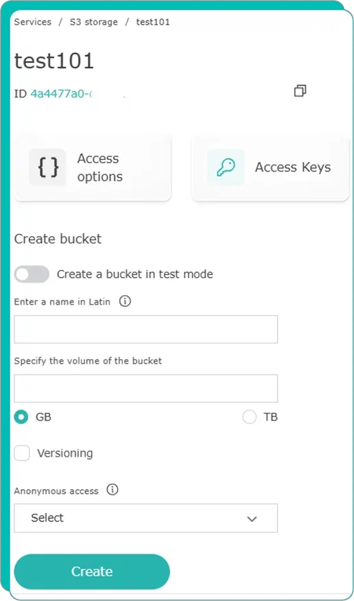 -Set the size of the bucket (GB\TB\Unlimited). This parameter can be changed afterwards.