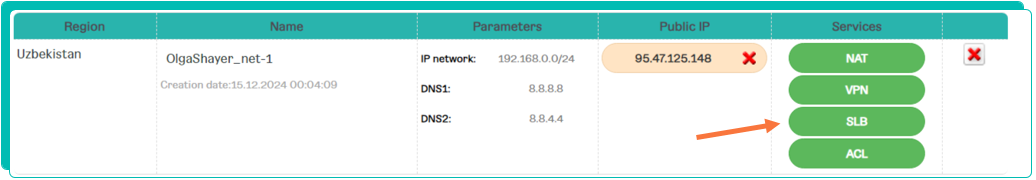 The network balancer service can be enabled only after connecting an external IP address for an objective KVM virtual network.